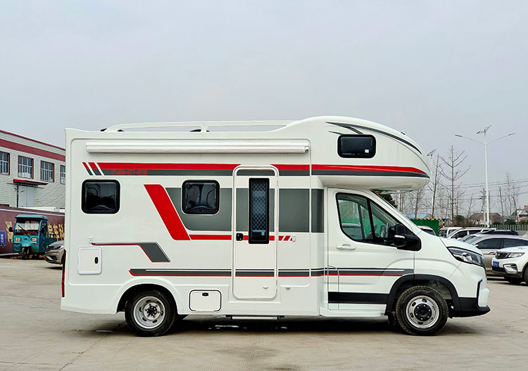 這款房車采用大額頭造型,一體成型廂體,車身與廂體連接自然流暢,低重心低風(fēng)阻。整車外部尺寸為:5990*2400*3030mm,藍(lán)牌C本即可駕駛。車身外部裝配有遮陽(yáng)棚、電動(dòng)踏步等常見(jiàn)的設(shè)施,抽拉式爐灶,選裝戶外翻板等方便日常使用。